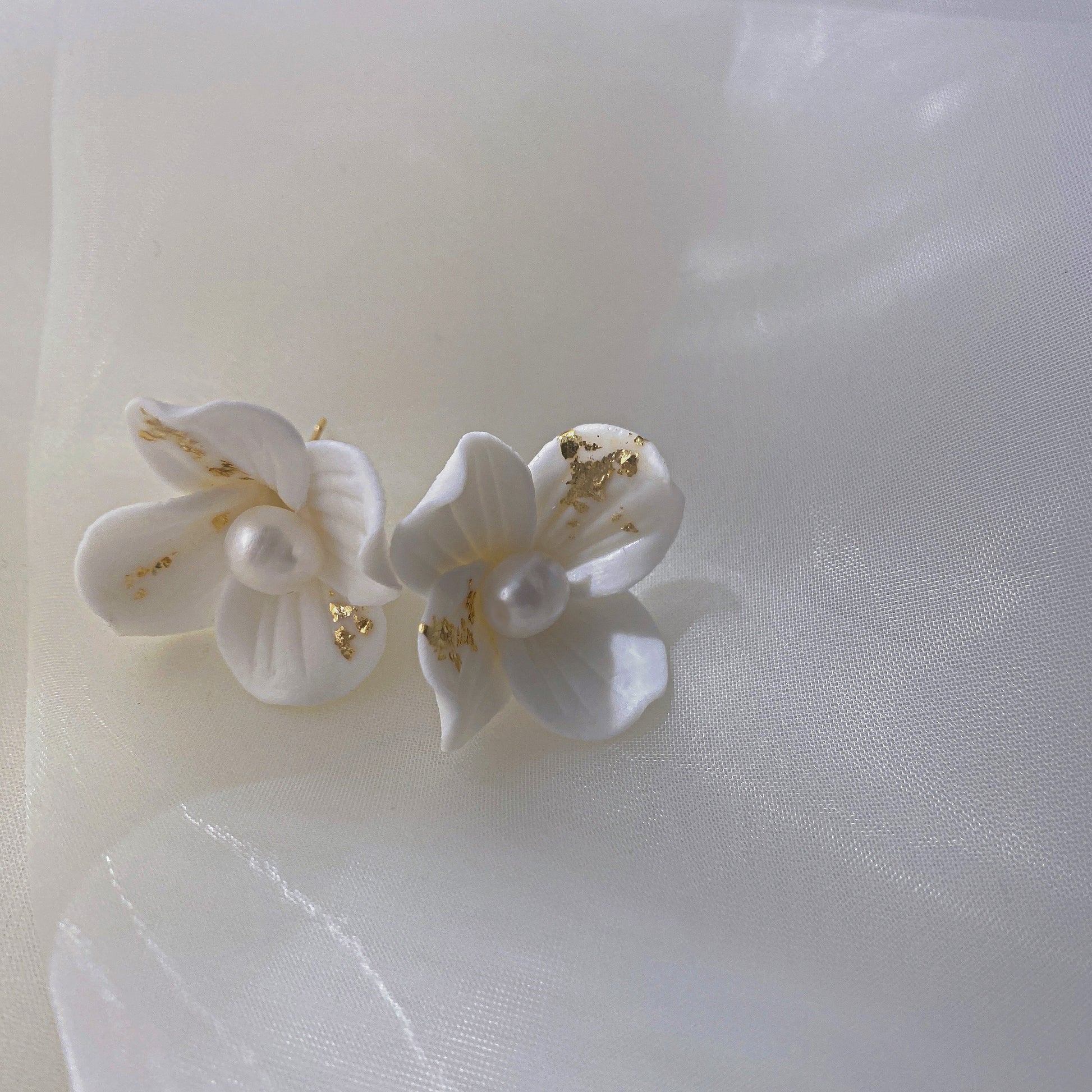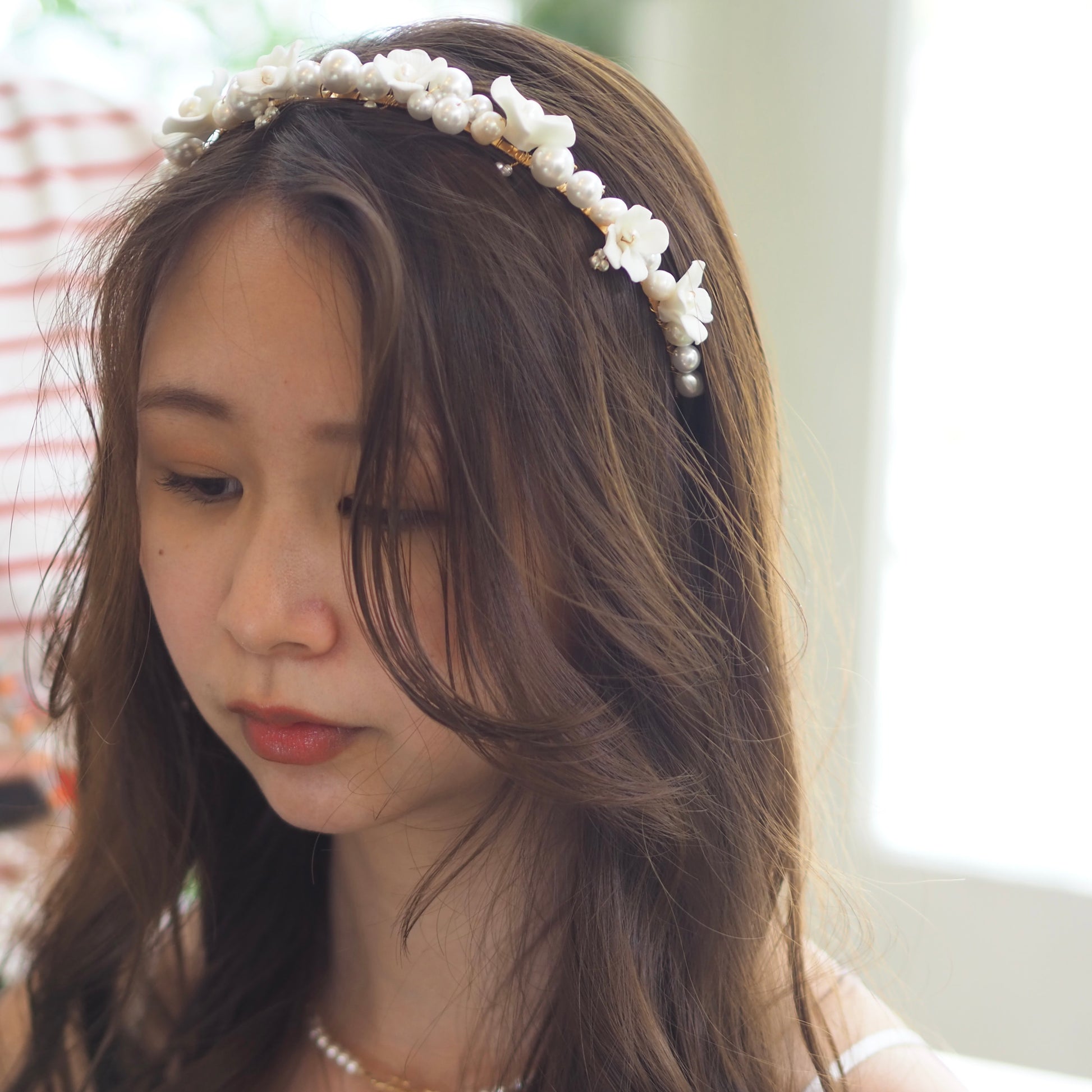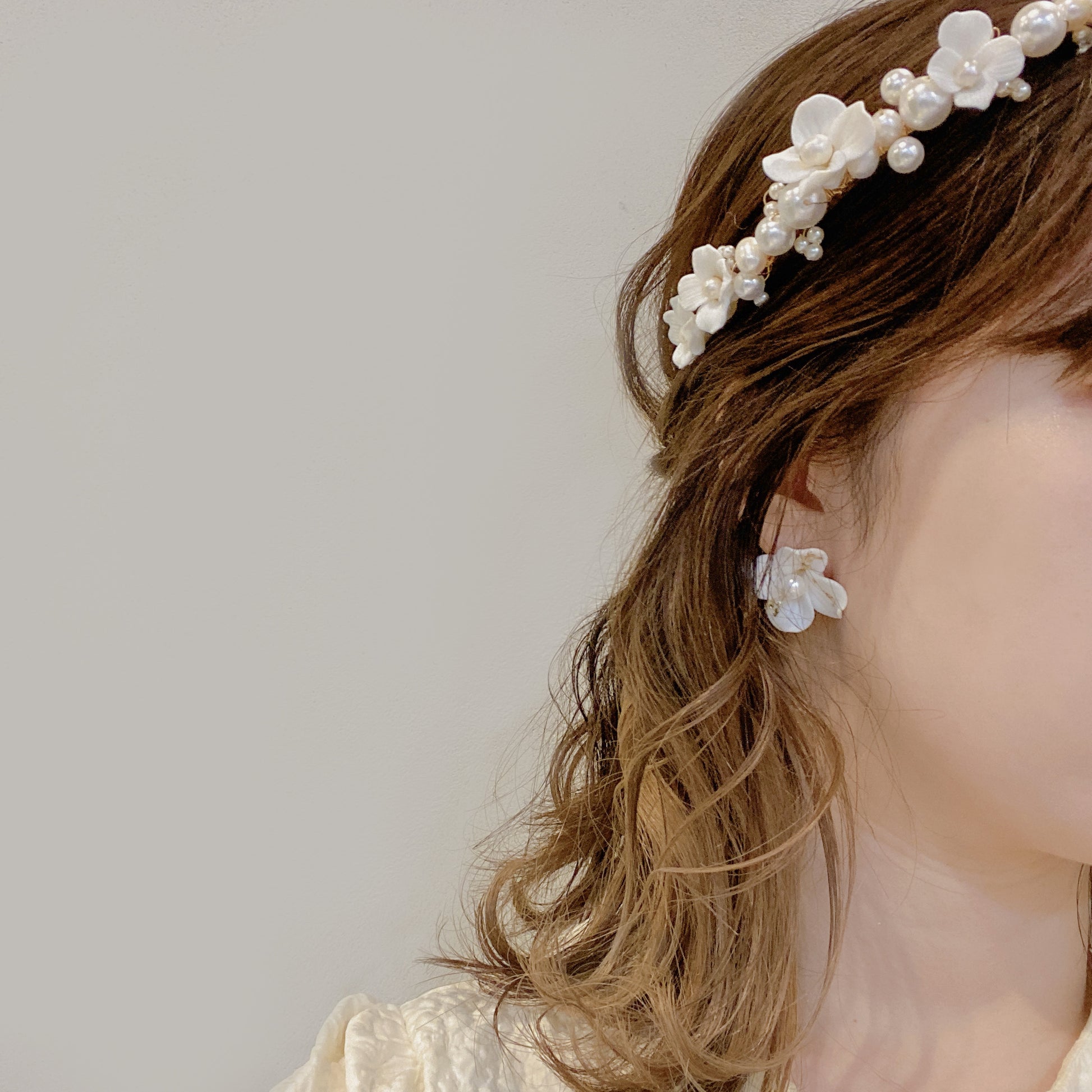 大人気のラブリーカチューシャ♡ご要望のお声が多かったイヤーアクセサリーをセットで◎大ぶり四つ葉フラワーと、ランダムにパールをあしらったキュートなデザインは唯一無のスタイル🌼イヤーアクセサリーには金箔を乗せて、上品な仕上がりに✨かわいいを追求した存在感あるカチューシャセットです🕊🤍