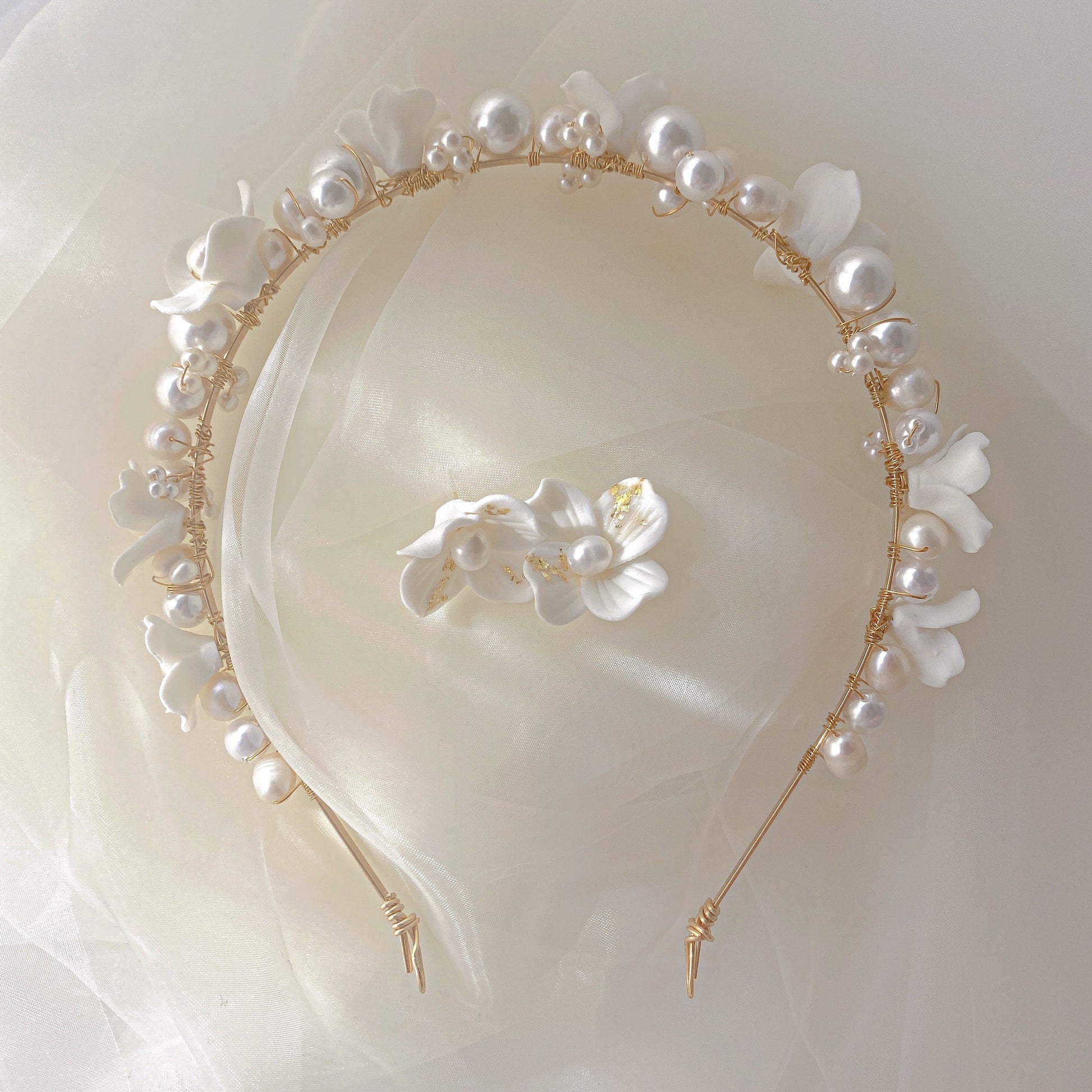 ウェディングフォトにもぴったりです。バックカチューシャでもお使いいただけます✨カチューシャ両端はヘアピンで固定できます。リボンを通して着用いただいてもとっても可愛いです🎀