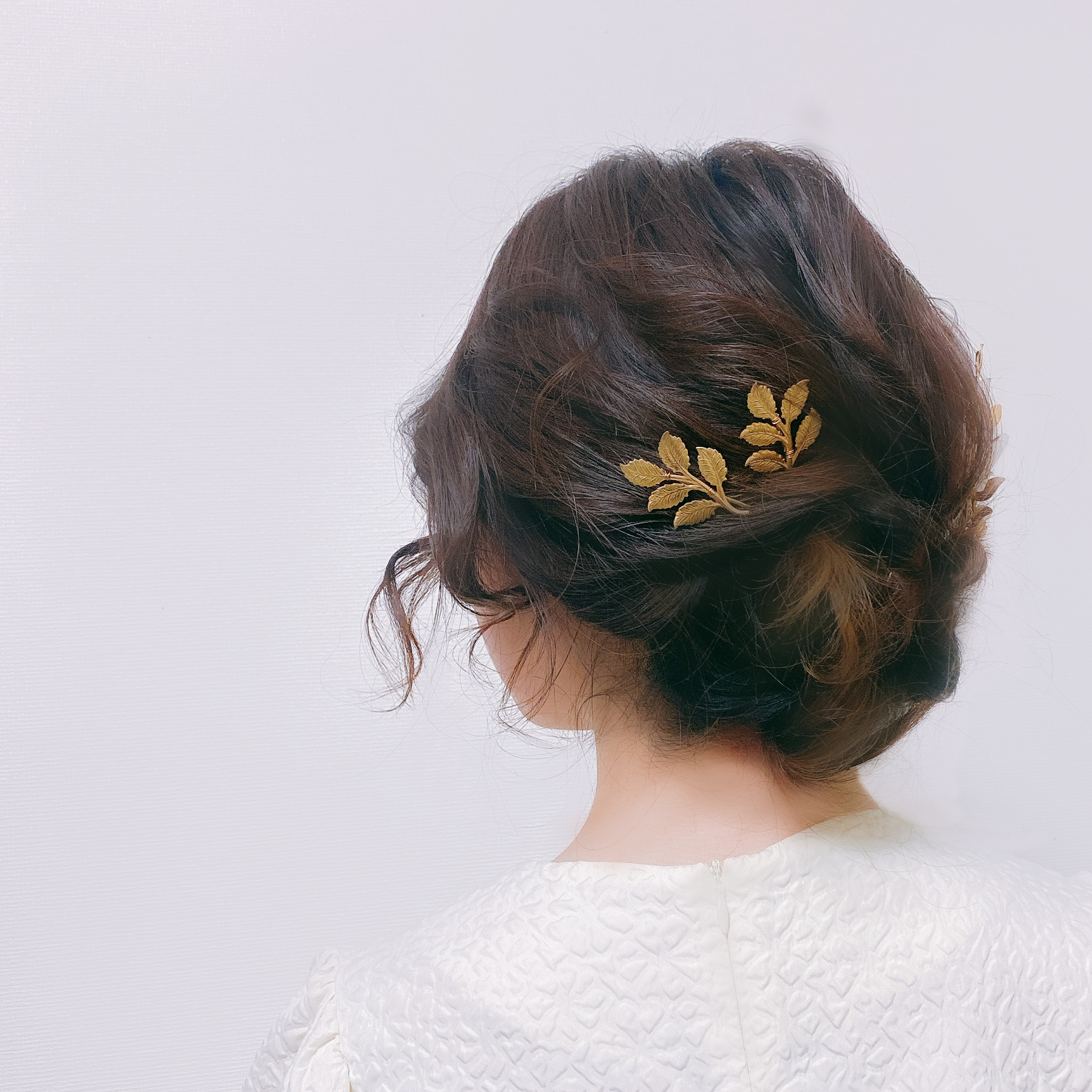 ヘアメイク時に通し穴にヘアピンをご使用下さいませ。