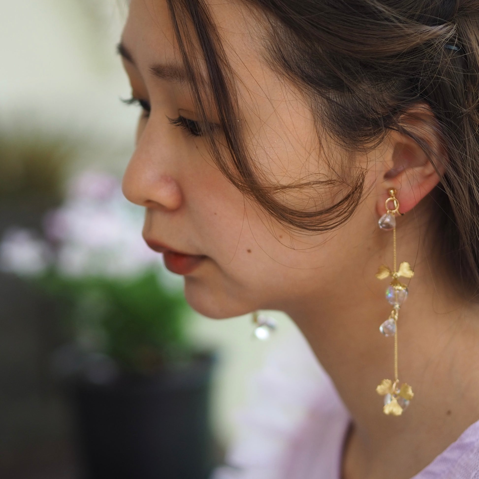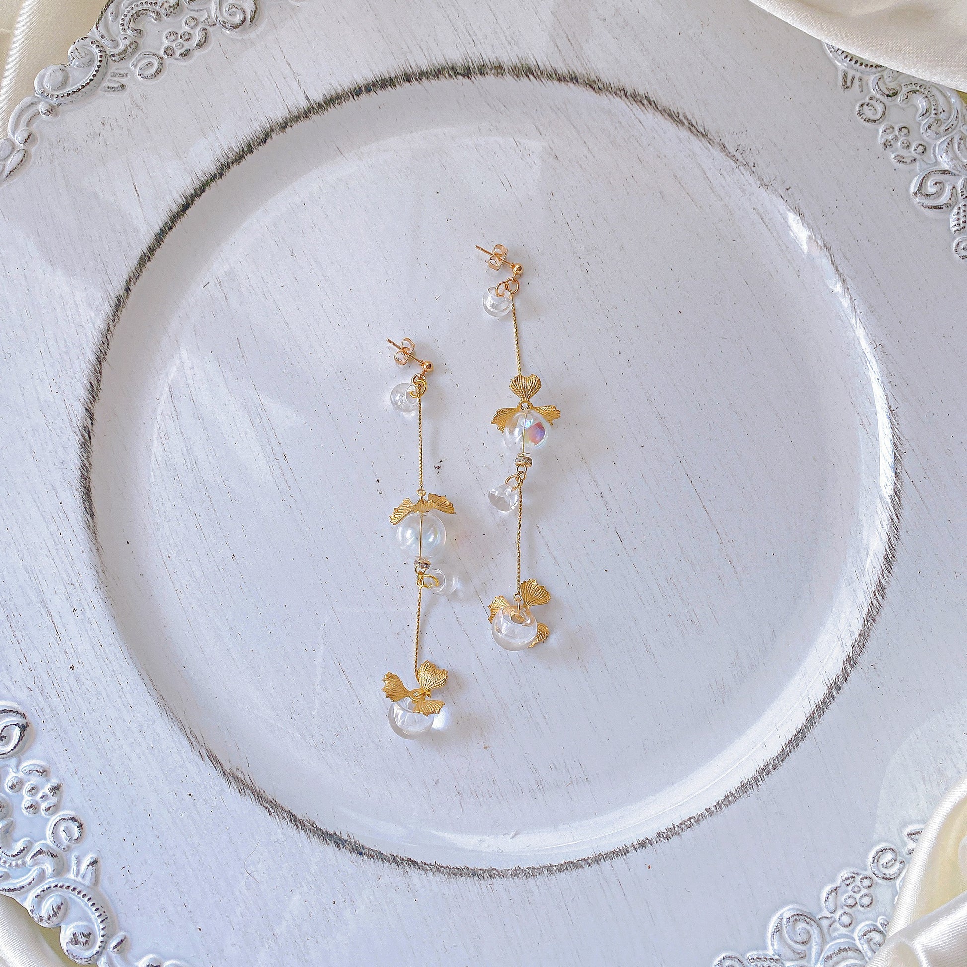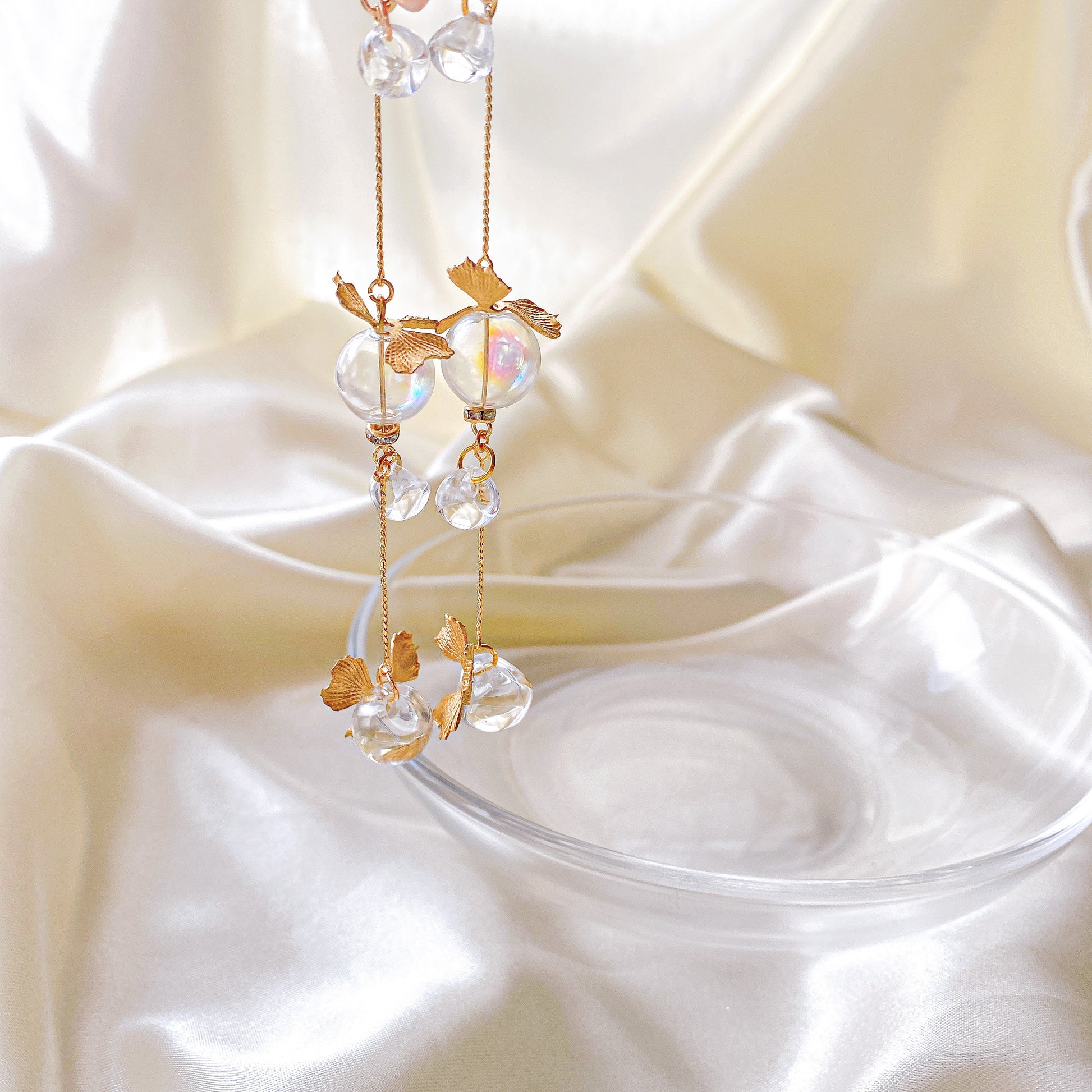 冷たく透き通った空をイメージして制作しました🫧クリアボールとヴィンテージゴールドパーツが組み合わさり、上品で透明感のあるピアス&イヤリングに仕上がりました🪡どのお色味のドレス・お召し物にもお似合いです✨丸いクリアガラスが顔まわりを明るく、そして可愛らしい印象に導いてくれます🤍