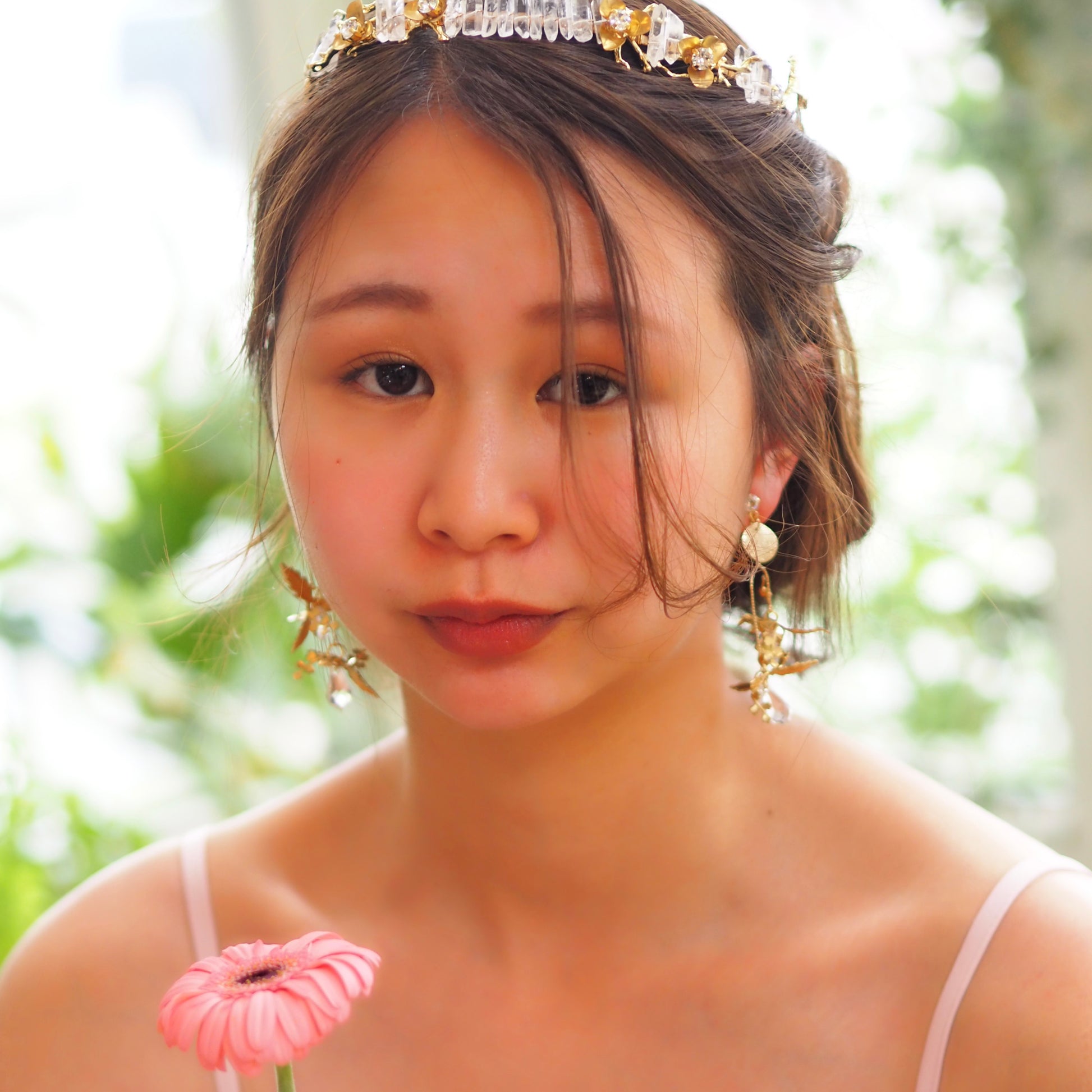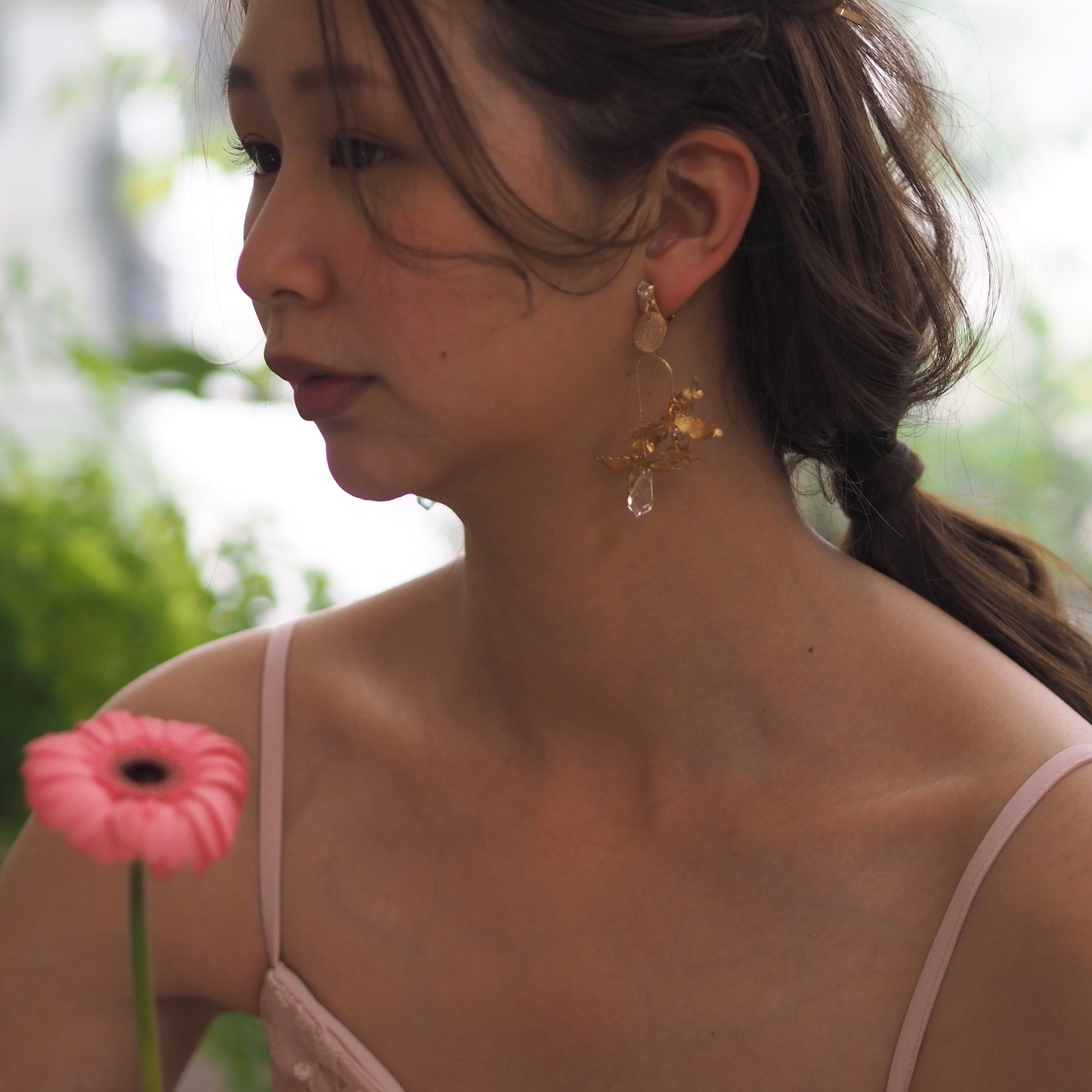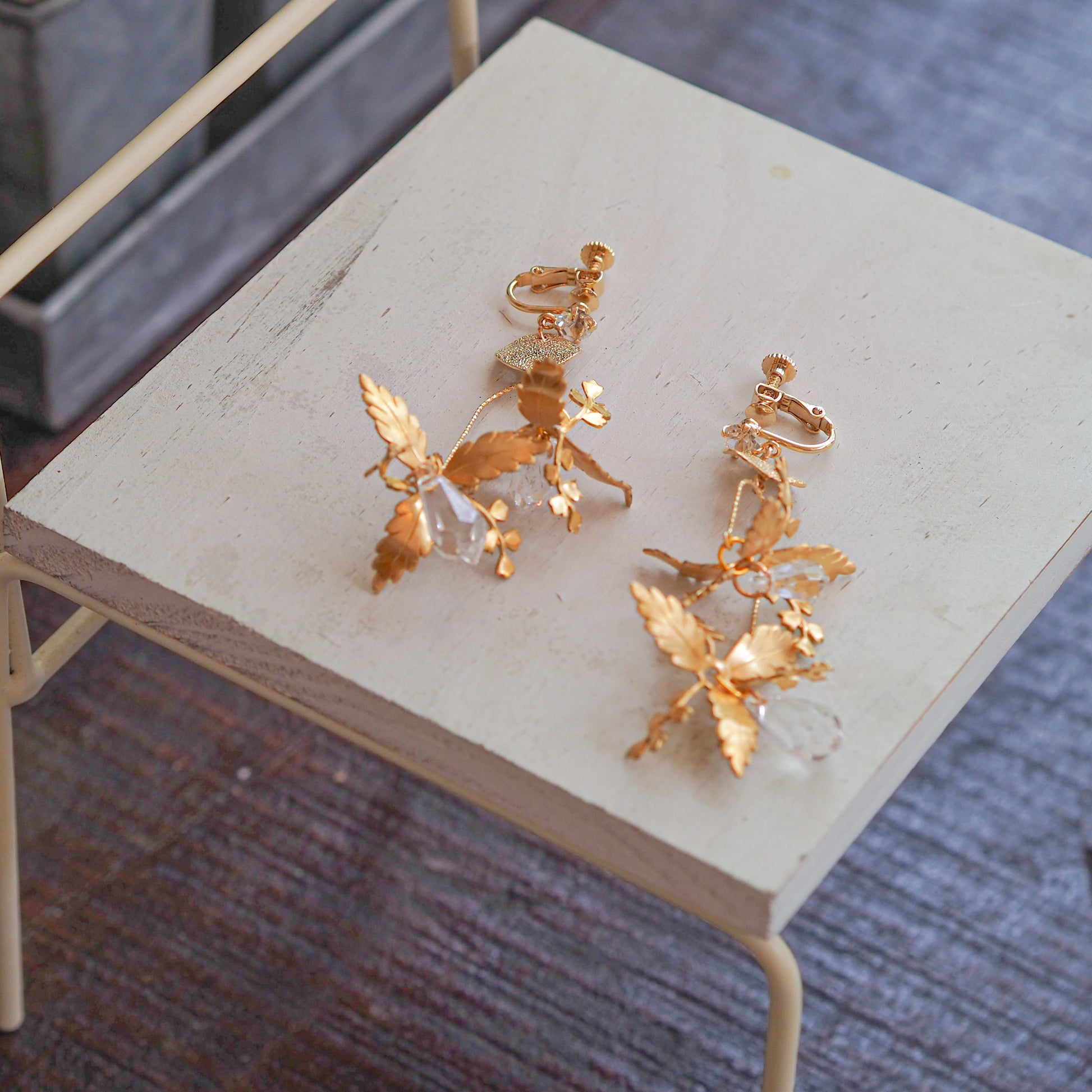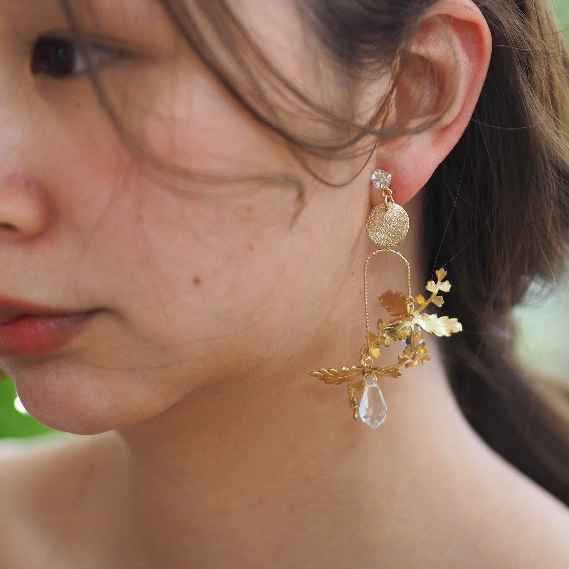 耳元が華やかになるように、煌めきを沢山取り入れた可愛いくて高貴なデザイン✨お花の形が絶妙に変化していて、どこから見てもキラキラ感を楽しめます💐日常使いして頂きやすい使用になっています🤍揺れると顔まわりがパッと華やかに🌿