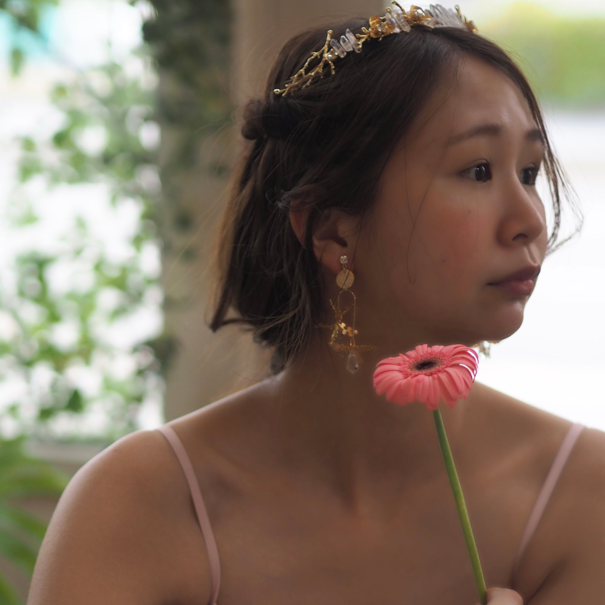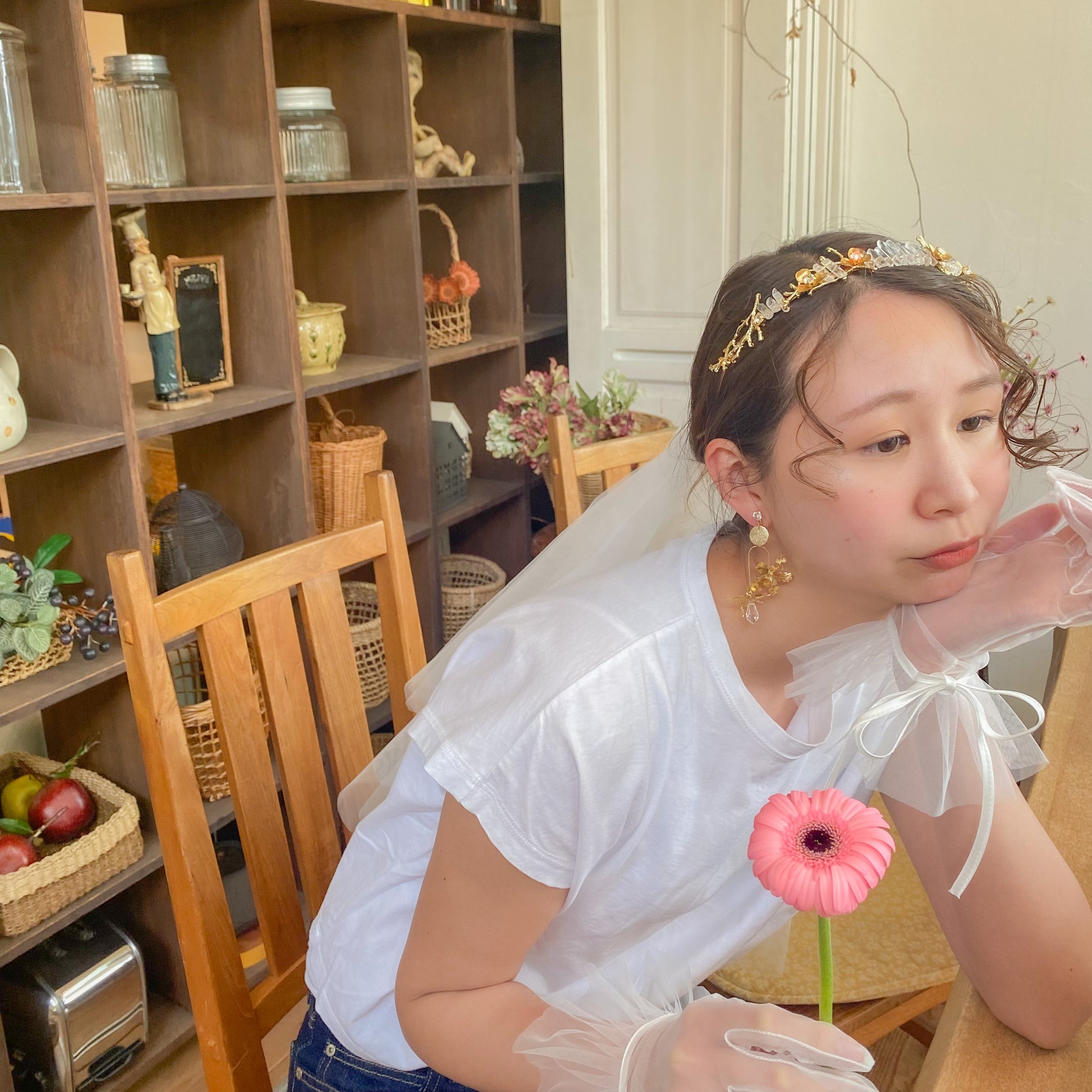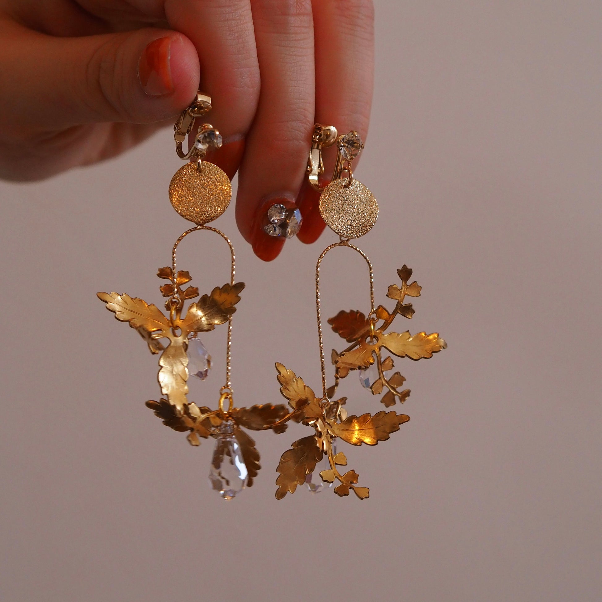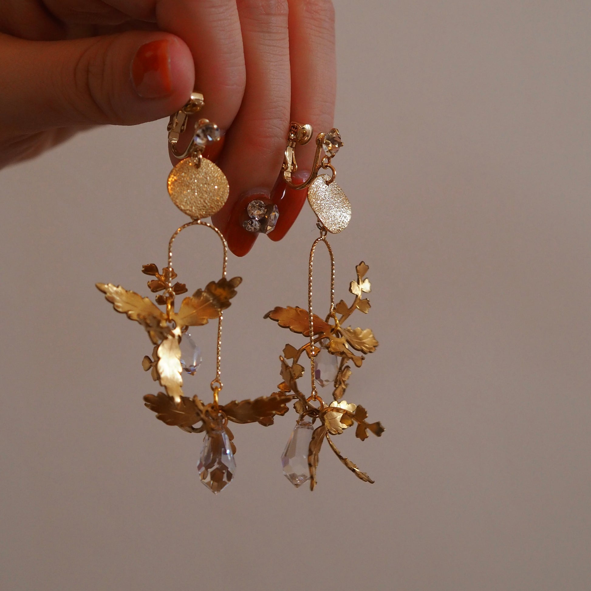 耳元が華やかになるように、煌めきを沢山取り入れた可愛いくて高貴なデザイン✨お花の形が絶妙に変化していて、どこから見てもキラキラ感を楽しめます💐日常使いして頂きやすい使用になっています🤍揺れると顔まわりがパッと華やかに🌿